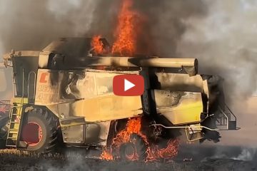 Claas Mähdrescher in Flammen: Landwirte verhindern Großbrand………. Durch den Staub und die Hitze verbreiten sich die Flammen rasend schnell. — hessenschau