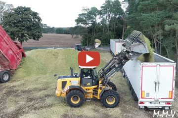 M-M-V Lohnunternehmen.. Mais häckseln 2021 + LKW Verladung – Beladen werden die LKW am Feldrand mit 2 Radladern der Marke Hitachi und JCB — Krone und John Deere Häcksler usw. — Motion-ProMovie