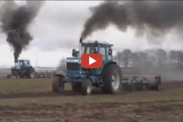 Zwei große Schlüter Tracs beim Pflügen mit 8- bzw. 7-scharigen Beetpflügen. Beide Schlepper liefen ursprünglich auf Gut Hardegg in Niederösterreich und waren nach 25 Jahren wieder auf dem Feld vereint — schluetersepp