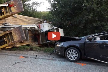 Fünf teils Schwerverletzte fordert ein schwerer Verkehrsunfall in Eberstalzell (Bezirk Wels-Land), bei dem ein PKW gegen einen Baggeranhänger gekracht ist.. — laumat.at media e.U. .