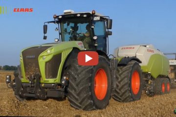 Agrarlohn Müritz beim Strohschwaden mit einem Fendt und einem Kuhn Merge Maxx 950. Dieser Arbeitsgang wird gemacht, damit die großen Pressen weniger Überfahrten benötigen — Landtechnik MV – Agricultural Videos