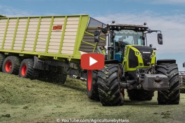 Zweiter Schnitt Grashäckseln 2022 durch das Lohnunternehmen Pleizier en Timmer mit einem Claas Jaguar 960 Feldhäcksler und Claas Axion Traktoren..– Agriculture by Hans