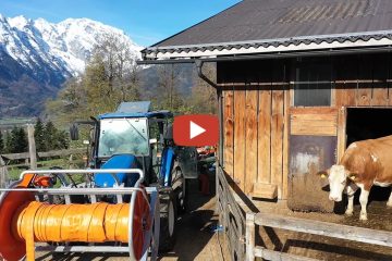 Rationelle Gülleausbringung am Hang – New Holland T4.95 an der GL 65 101.2, Schneckenpumpe, 600m 75mm Schlauch und Lindner Geotrac 70 mit Zwillingsräder am Möscha Verteiler — Willi Wörndl