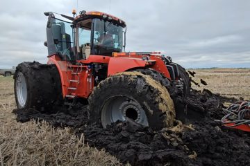 Festgefahren Mike Mitchell bleibt bei der Aussaat in Kanada mit dem Case IH 580 stecken…
