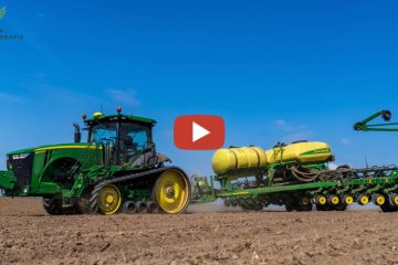 XXL Maisausaat 2022 im gigantischen Umfang. Hier eine John Deere 8370RT Raupe mit einer 1775 NT Legemaschine auf einem 300ha Schlag in Sachsen Anhalt.– Agrarvideografie Boerde