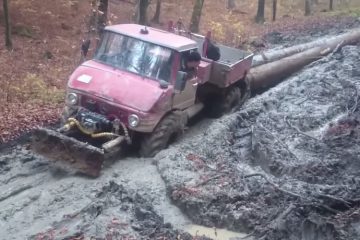 Mercedes Unimog ziehen schwere Stämme