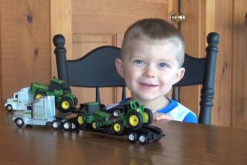 KLEINER JUNGE LIEBT JOHN DEERE SCHLEPPER SPIELZEUG