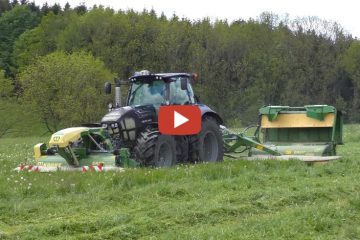 In Bad Wurzach haben Torben und Peter von der KRONE Green Power Tour mit ihren Maschinen 40 ha gemäht und gezettet–.Agrartechnik FullHD