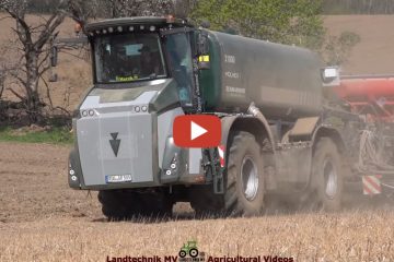 Agrarservice Rügen mit einem Holmer 585, Strip Cat und einer 12-reihigen Horsch Drille bei der Maisaussaat. Für den Transport sind Verschiedene Fendt Traktoren und ein Scania LKW im Einsatz. Landtechnik MV – Agricultural Videos