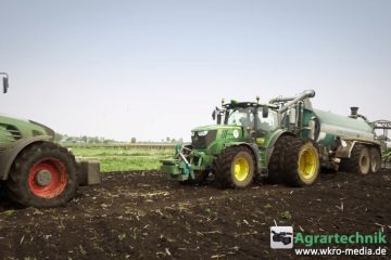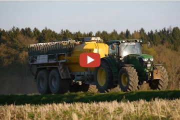 AMAZONE ZG-TS 10001 Aufbaustreuer mit John Deere R4038 sind die ideale Lösung für Lohnunternehmer und Betriebe