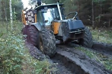 Valtra Forsttraktor Arbeit im Schlamm