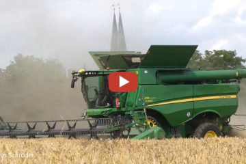 Die Ernte 2021 hat begonnen und 2 John Deere S 780i mit Raupenfahrwerk dreschen die erste Gerste bei Alikendorf in der Börde — Militär- und Landtechnik Klaus Schröder