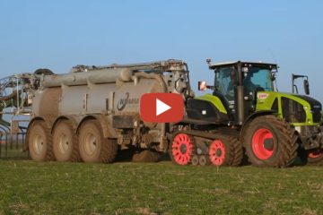 Stefan Lübke — Gülle 2024 -LU Teichmann mit seinem neuen Claas Axion 960TT mit einem Kumm KTR Fass, und einem 36m Schleppschauch bei der Gülleausbringung