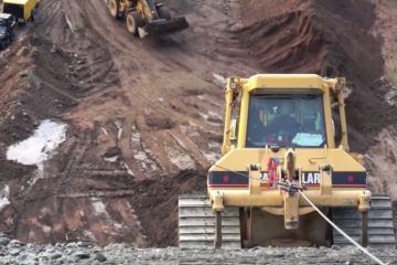 Bulldozer an einem Stahlseil, auf einer Steigung von 40 Grad