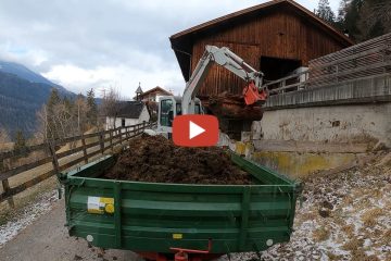 Mistfahren 2023 — Als Fahrzeuge sind ein New Holland 72-86 und ein Takeuchi tb135 im Einsatz.