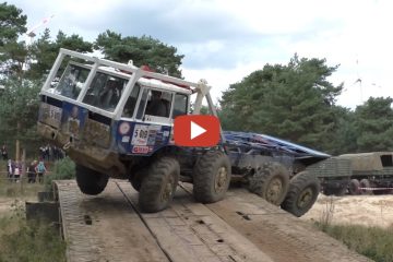 Offroad Tatra wendet auf Pontonbrücke beim 1.Militärfahrzeugtreffen in der Panzerfahrschule — Militär- und Landtechnik Klaus Schröder