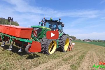*Lohnunternehmen T-Schaller – John Deere 6150 R bei der Streifenfrässaat..Swiss Agriculture