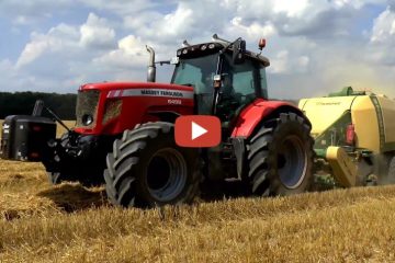 Stroh Häckseln und Pressen / Massey Ferguson 6499 mit einer Krone BigPack 1290 XC High Speed mit vorgebauten PreChop Häcksler. — Roman Schmitz