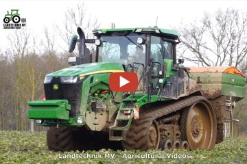 Dünger ausbringen 2021 mit einem John Deere 8RT 410 und Amazone ZA-TS 4200. Beladen wird von einem Fendt 939 mit Hawe ÜLW. — Landtechnik MV – Agricultural Videos