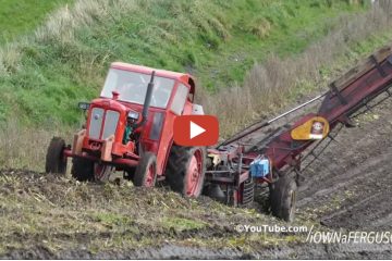 Bergsteigen in den schlammigen Feldern während der Zuckerrübenernte Volvo BM320 & Fiat 615 | DK Agri