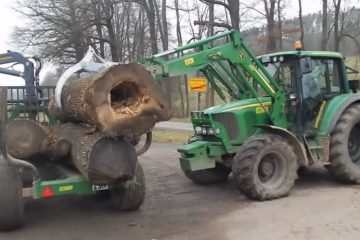 John Deere 6320 und Farma 9t – Dicke Eschenstaemme verladen -zloewen-