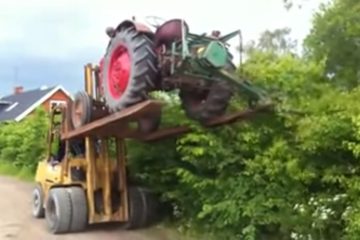 Hecke Schneiden mit Traktor