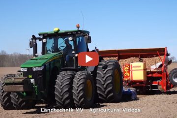Kartoffelpflanzen mit John Deere 8310R und 6 Reihiger Grimme GL 660 mit vorgebauter Lemken Kreiselegge. – Landtechnik MV – Agricultural Videos