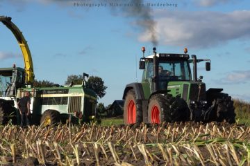 Mike van den Hardenberg – Schlamm – LU Molenaar und Vlastuin Maisernte unter schlammigen Bedingungen. Der Mais wird von einem John Deere 6750 gehäckselt.