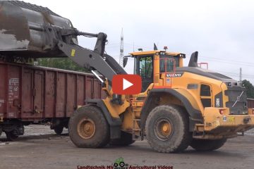 LU. Blunk bei der Verladung von Zuckerrüben auf Güterwaggons für die Schweiz mit einem Volvo L180H Radlader. – Landtechnik MV – Agricultural Videos