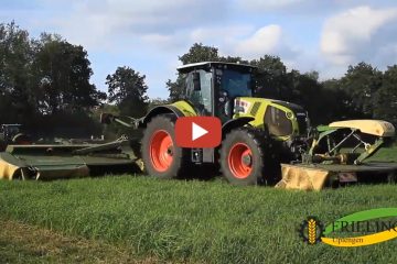 Das Lohnunternehmen Frieling war mit dem 3. Schnitt beschäftigt.. Mähen, Schwadern, Häckseln 2019. Claas und John Deere