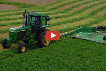 Mähen von Alfalfa in den USA auf einem kleinen Milchviehbetrieb mit einem John Deere x4440 & John Deere 835 MoCo – iowadairyboys