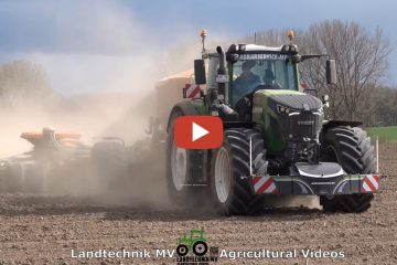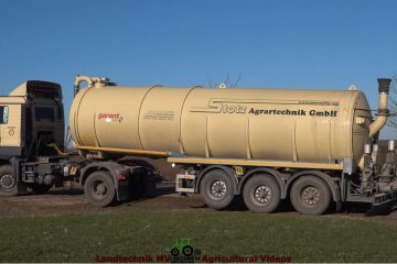 Ganzenmüller Agrar mit einem Fendt 1050 und Samsan Tridem PG35 mit 36 Meter Schleppschlauchgestänge beim ausbrigen von Gülle. Zur Anlieferung sind mehrere MAN LKW im Einsatz. Landtechnik MV – Agricultural Videos