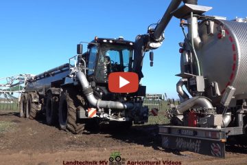 Fendt Vario 828 mit einem Güllemaschinengewehr