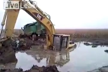 Drei Bagger und einem Mähdrescher Fest im Schlamm