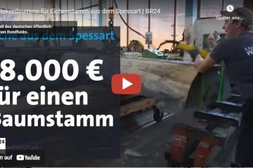 18.000 Euro für einen einzelnen Stamm – Eichen aus dem Spessart sind weltweit gefragt und dementsprechend teuer. — BR24
