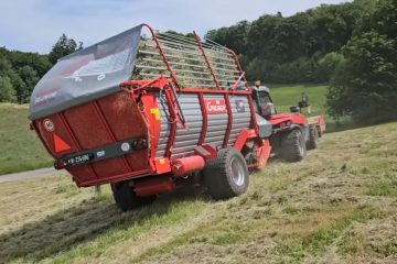 Auf dem Armee-Gelände «Sand» in Schönbühl (BE) kommt ein Hanggeräteträger Aebi «TT281+» mit pneumatischer Anhängerbremssteuerung zum Einsatz. Maschinenbau Otto Gruber GmbH hat für diesen «Terratrac» einen Ladewagen mit Zentralachse, Luftfederung und elektronischem Bremssystem (EBS) gebaut, Landtechnik Schweiz