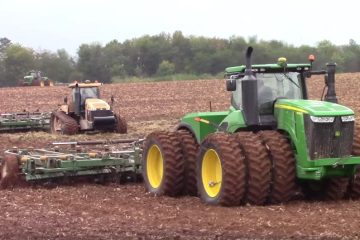 Drei John Deere 9620R 4WD und einem Challenger MT875C Grubbern USA