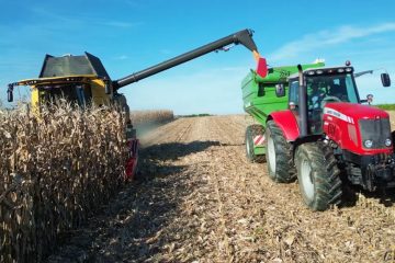 Maisernte vom Lohnunternehmen Himmelfreundpointner Agrar aus Thalheim bei Wels. New Holland CR 8.80 beim Mais dreschen – Massey Ferguson + Überlader — Landwirtschaftliche Maschinen im Einsatz