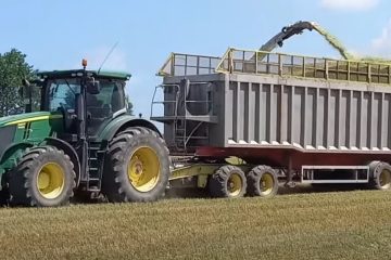 Agrarvideo mv — Gerste GPS Ernte 2024 Gut Hohen Luckow Jaguar 970-Direct disc 6m, – Case Optum250 und John Deere 6250r/7250r Traktoren.