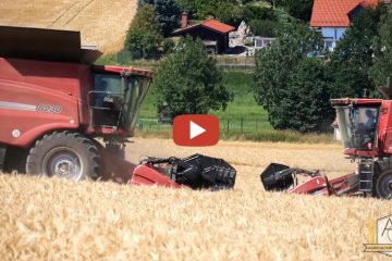 Dreschen im Sonnenuntergang 2021 mit 3x Claas Lexion und 5 Abfahrer …John Deere Traktoren…. Agrar Nordsachsen