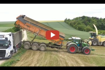Lohnunternehmen Soyer, beim Siloballenpressen mit einem John Deere und einer Krone Presse.