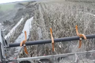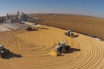 John Deere Traktoren 9R . Der Mais wird später in Ethanol hergestellt werden