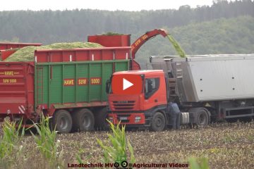 LU Babbe Bülow beim Maishäckseln mit einem Claas Jaguar 980 und zwei Fendt und einem Claas Schlepper – Auf dem Silo arbeiten zwei Claas Xerion 4200 Trac VC Traktoren.. Landtechnik MV – Agricultural Videos